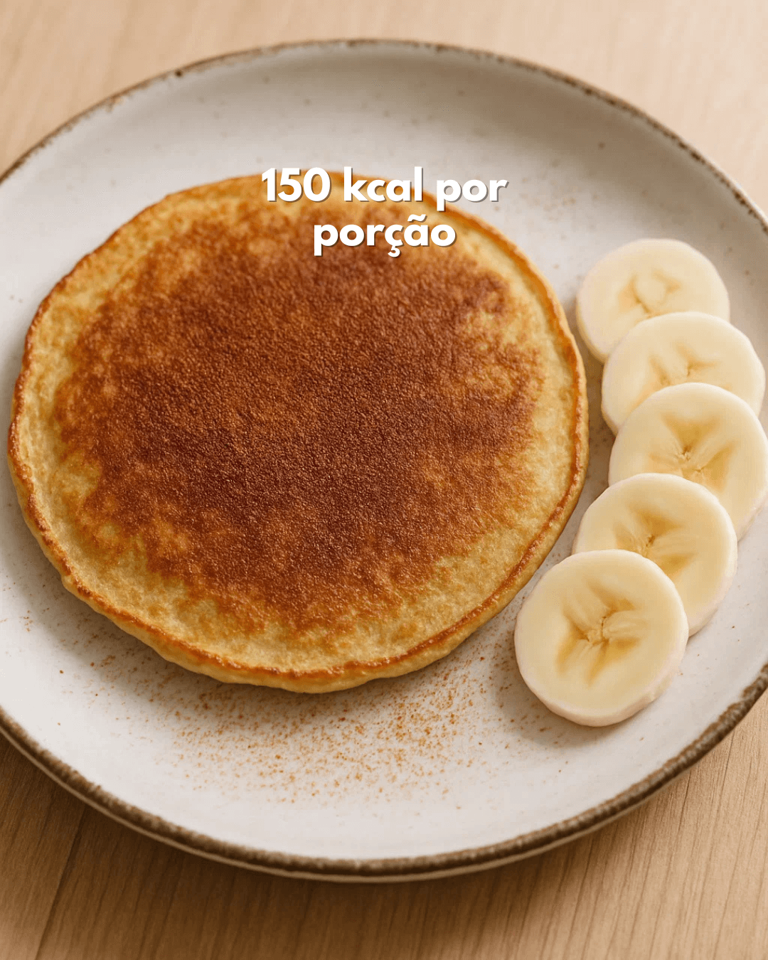 Panqueca de banana saudável com ovo e canela: só 150 kcal por porção, rica em proteínas e fibras. Pronta em minutos para seu café da manhã fit!